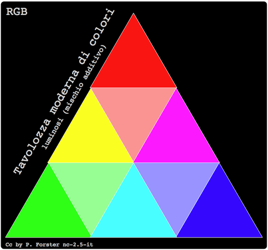 Italiano: Tavolozza di colori RGB impostato in uno schema cromatico secondo Goethe